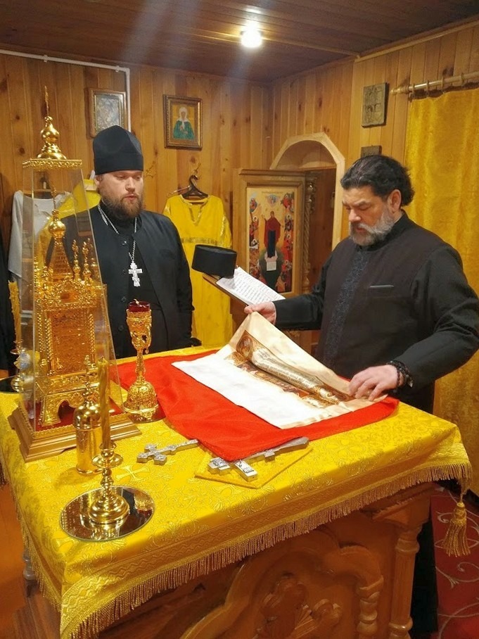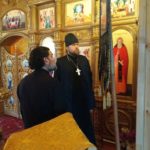 Настоятель храма «Всех Скорбящих Радосте» иеромонах Андрей (Дергачёв-Белошецкий) ознакомил отца благочинного с обновлением внутреннего убранства трапезной части храма, а также алтаря. Отец Александр осмотрел состояние Антиминса, на котором совершается Евхаристия.